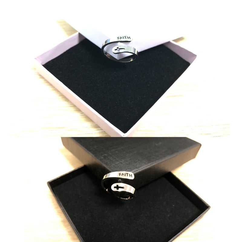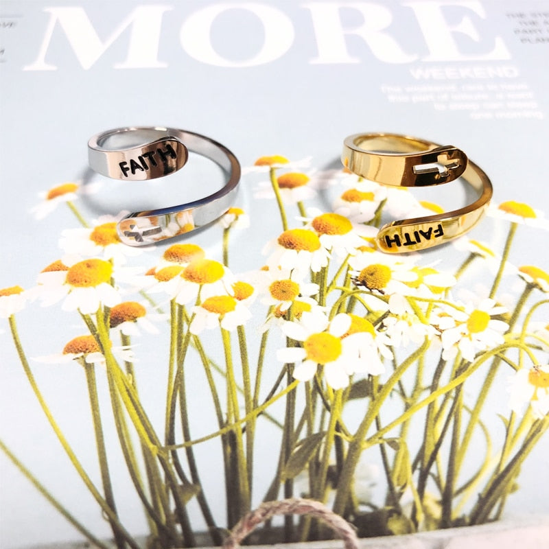 2020 jewelry faith adjustable Rings&Stainless Steel Rings For Women vintage cross letter round on fingers Gifts for the new year|Rings|