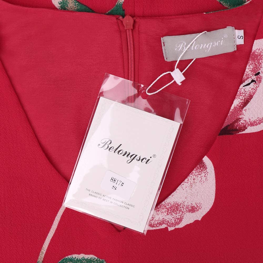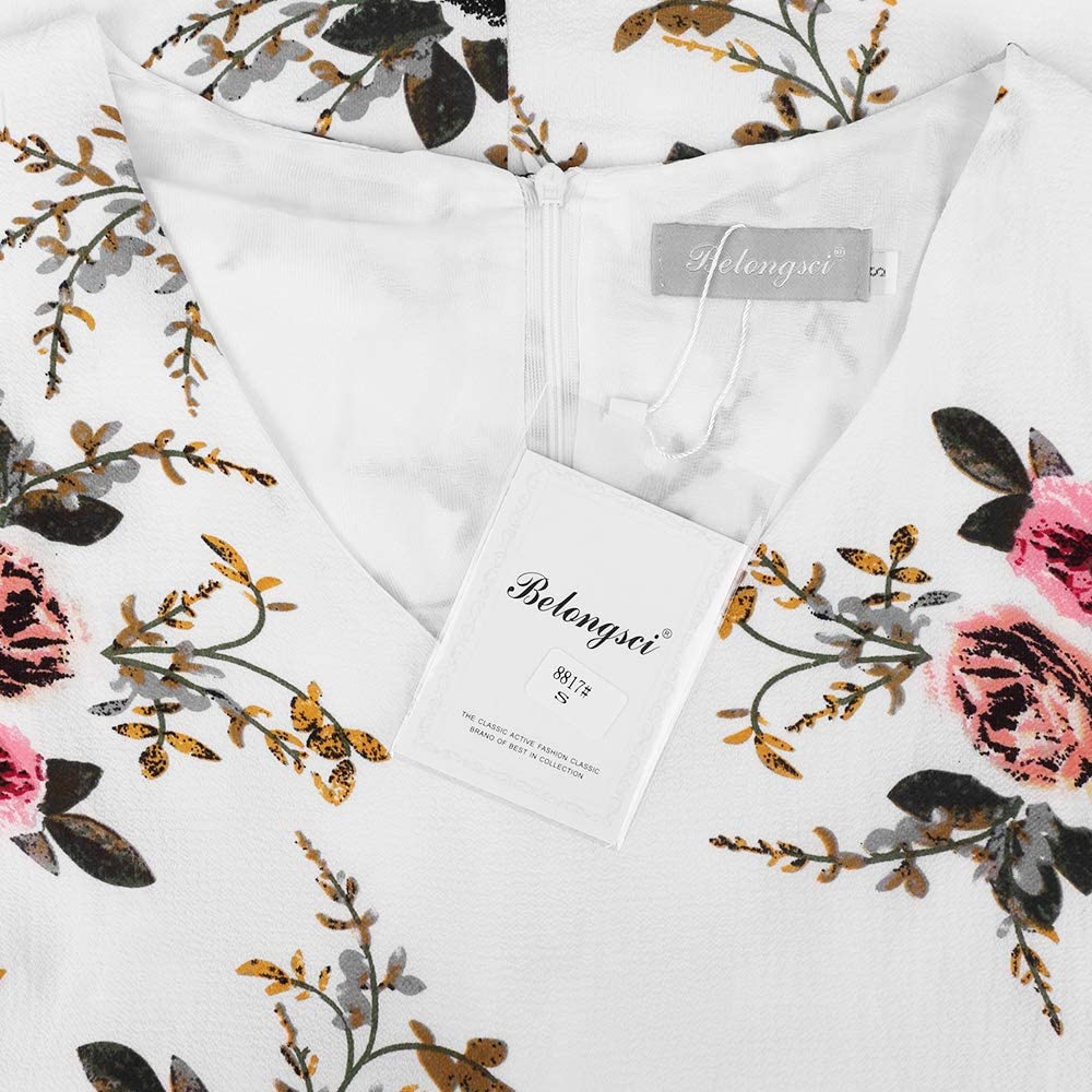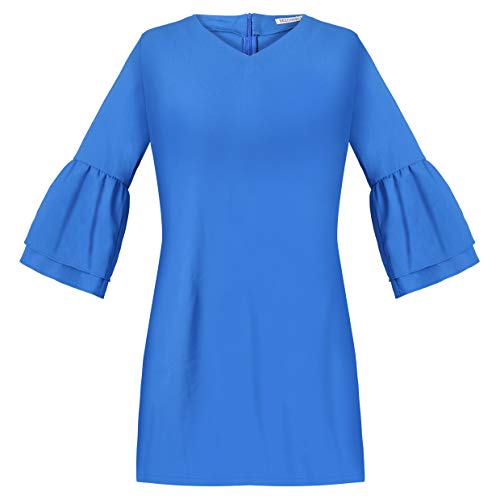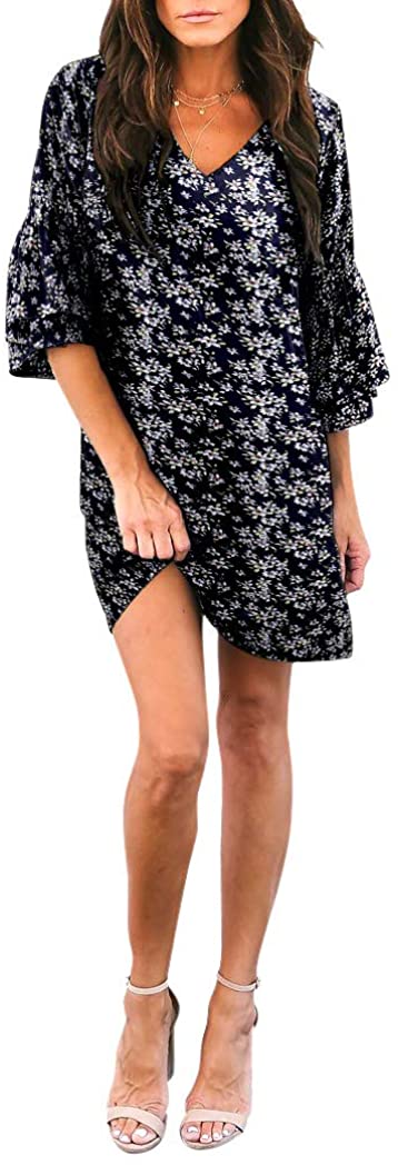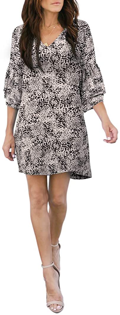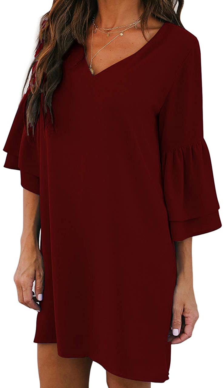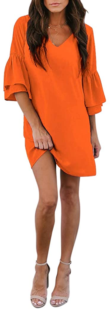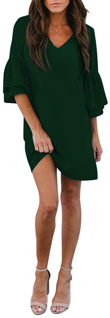 BELONGSCI Women's Dress Sweet & Cute V-Neck Bell Sleeve Shift Dress Mini Dress