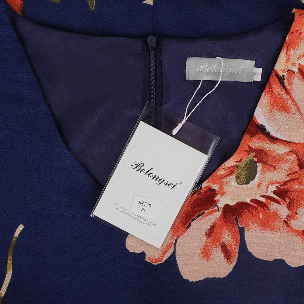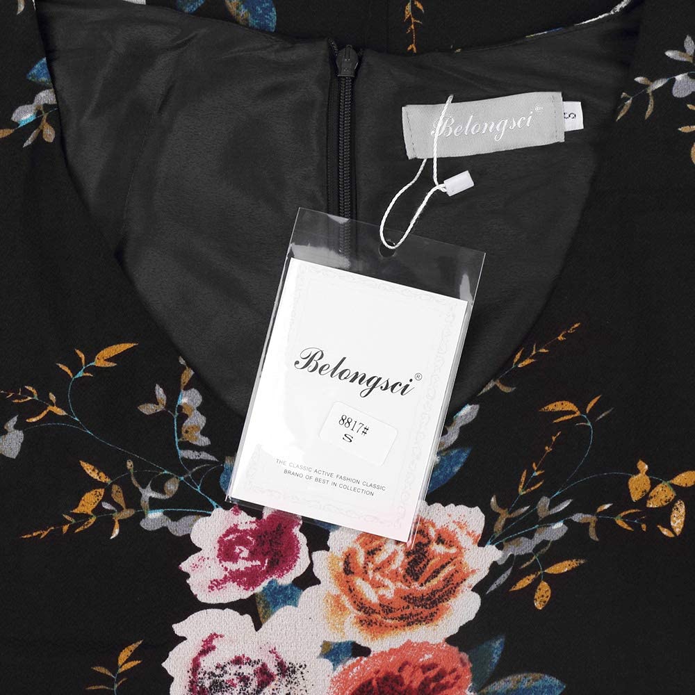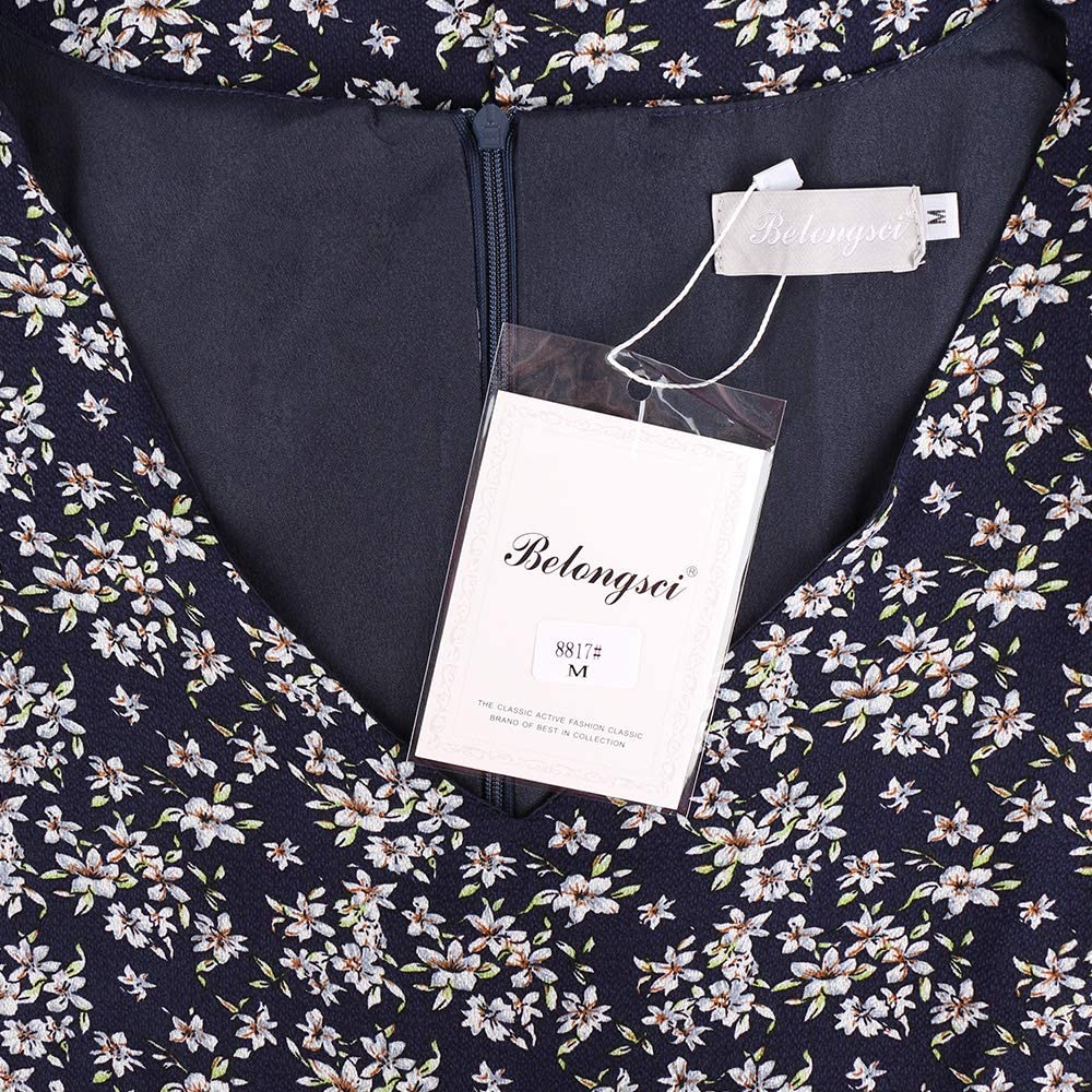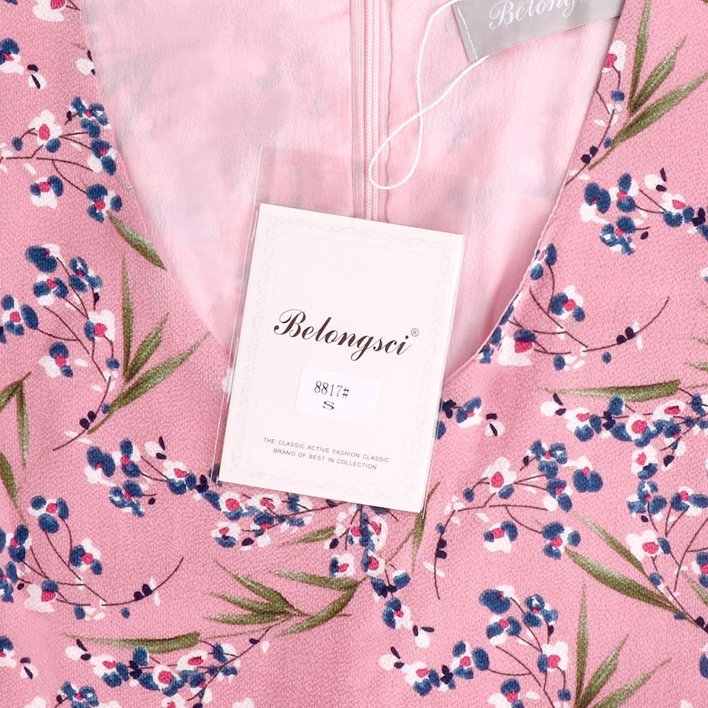 BELONGSCI Women's Dress Sweet & Cute V-Neck Bell Sleeve Shift Dress Mini Dress